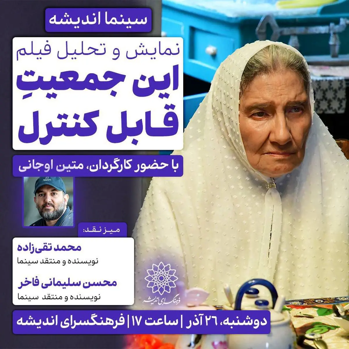 فیلم سینمایی «این جمعیت قابل کنترل» در باشگاه «سینما اندیشه» اکران و نقد و بررسی میشود.