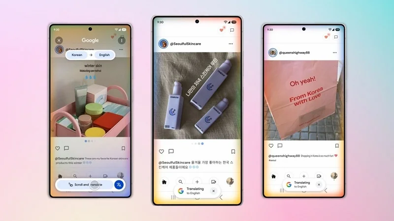 از این پس کاربران میتوانند هنگام اسکرول کردن یا حتی جابهجایی بین برنامهها، متنها را بهصورت آنی ترجمه کنند. برای استفاده از این قابلیت کافی است دکمه هوم یا نوار ناوبری را نگه دارید تا Circle to Search فعال شود، سپس روی آیکون Translate بزنید و گزینه Scroll and Translate را انتخاب کنید.
