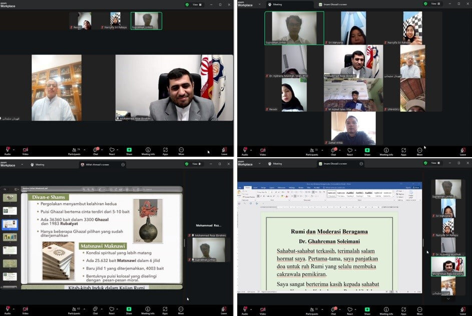 به همت رایزنی فرهنگی جمهوری اسلامی ایران در جاکارتا و با همکاری اتاق ایران دانشگاه حسن‌الدین ماکاسار، اتاق ایران در دانشگاه سونان گونونگ جاتی باندونگ، مرکز تحقیقات زبان فارسی در هند و مؤسسه رومی اندونزی، وبینار بین‌المللی «مدارای دینی از دیدگاه مولانا جلال‌الدین بلخی» برگزار شد.