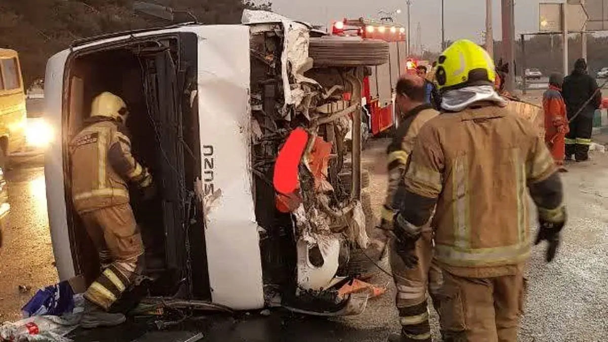 مینی‌بوس سرویس کارگران در تهران واژگون شد/ مصدومیت ۶ کارگر