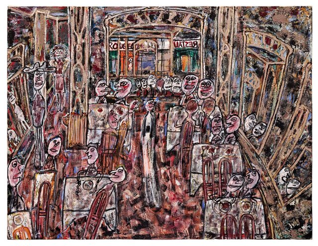 اثر «رستوران روژو دوم» (Restaurant Rougeot II)(۱۹۶۱) از «دوبوفه» تا سقف ۸ میلیون دلار قیمتگذاری شده بود، در نهایت به قیمت ۷.۴۹ میلیون دلار فروخته شد. این اثر، یک رستوران شلوغ پاریسی را به تصویر میکشد که پر از صحنه گفتوگو و غذا خوردن مشتریان است. این اثر از مجموعهی «سیرک پاریس» اوست.