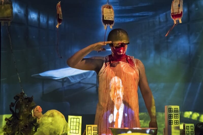 این نمایش که یک «میکرو تئاتر» است و اجرای آن از شیوه‌های نمایشی مدرن پیروی و از ابزار و تکنولوژی تصویری و نوری روزآمدی بهره میبرد، با تکیه به موضوع جنگ با محوریت نقش جنگ سالاران و جنایتکاران جنگی، پیرامون نسل کشی و کودک‌کشی به جنگ افروزی قدرت‌های دنیا و خصوصاً جنگ تحمیلی ١٢ روزه علیه ایران می‌پردازد و آنرا به شیوه‌های تصویری و نشانه شناسانه به نمایش در می‌آورد.