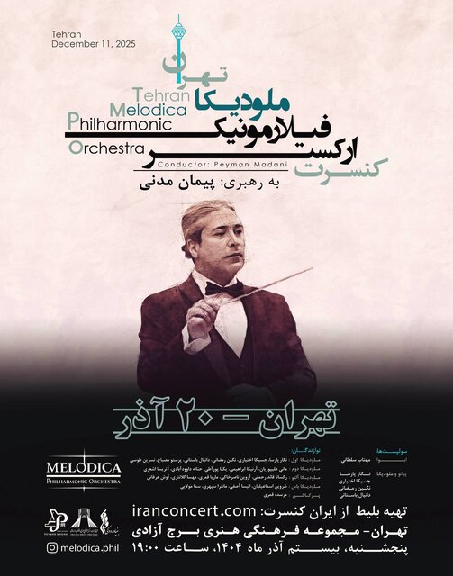 ارکستر فیلارمونیک ملودیکا به رهبری پیمان مدنی روز پنجشنبه ۲۰ آذر ماه از ساعت ۱۹ در سالن اصلی برج آزادی تهران به صحنه میرود.